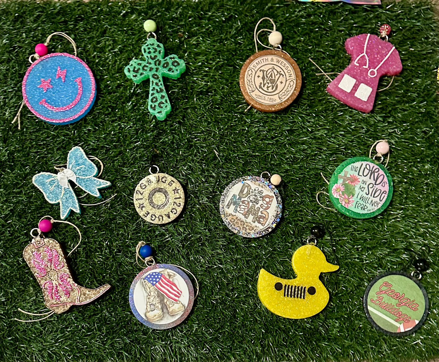 Handmade car freshies—crafted with care and designed to elevate your driving experience! Each freshie is made from high-quality, eco-friendly materials and infused with delightful, long-lasting fragrances. Choose from a variety of scents, from refreshing citrus to cozy vanilla, all beautifully shaped and adorned to add a touch of charm to your car, closet, bathroom, laundry room, locker, you name it!